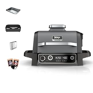 €79,99Produkt kaufenNinja Woodfire Elektrogrill, Camping-Grill mit Smoker-& Heißluftfritteuse, 7-in-1-Outdoor Grill, räuchern, braten, backen, wetterfest, antihaftbeschichtet, tragbar, Grau/Schwarz OG701EU