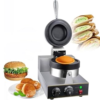 ASnwpaK 1300W Kommerzielles Elektrisches Hamburger-Waffeleisen, Antihaftbeschichteter Hamburgermaker, Beidseitige Heizung, Temperatur: 50–300 °C/Zeit: 0–2min., FüR Hamburger, Dorayaki, Panini
