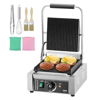 €139,99Produkt kaufenVEVOR kommerzieller Panini-Grill, 1800 W elektrischer Sandwich-Panini-Maker, Sandwich-Pressgrill aus Edelstahl, Panini-Grill mit Temperaturregelung und 23 x 23 cm großer flacher Emaille-Platte