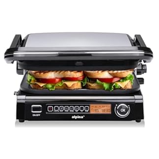 alpina Kontaktgrill – Optigrill 2100W – Sandwich Maker – Panini Grill – Multigrill für Gemüse, Brot und Fleisch – Tischgrill mit Antihaftbeschichtung – Intelligente Kochmodus – BPA-Frei – Schwarz