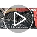 ADE Kontaktgrill 2.000 Watt | Elektrogrill für Balkon | antihaftbeschichteter Sandwichmaker 3 in 1 | Paninitoaster & Tischgrill elektrisch 180° aufklappbar | für Sandwiches, Steaks, Gemüse, Panini
