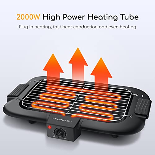 Aigostar Rauchfreier Tischgrill Barbecue Elektrogrill Elektrischer BBQ Grill 2000 Watt Antihaftbeschichtete Grillfläche 36 x 21cm, Abnehmbarer Fettauffangschale, Thermostat, Schwarz.