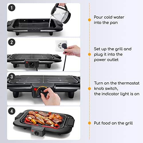 【2000W Schnelles Erhitzen】 Optimale Zubereitung von saftigen Grillgerichten durch große Grillfläche und Temperaturregler. Gleichmäßige Wärmeverteilung dank kontinuierlicher Heizschlange, die Lebensmittel gleichmäßig und schnell ohne Nährstoffverlust grillen kann.