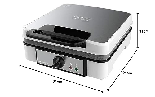 Cecotec Elektrisches Waffeleisen Fun Gofrestone 4Inox. 1200 W, Edelstahl, 4 Waffeln gleichzeitig, Antihaftbeschichtung Rockstone, einstellbare Temperatur