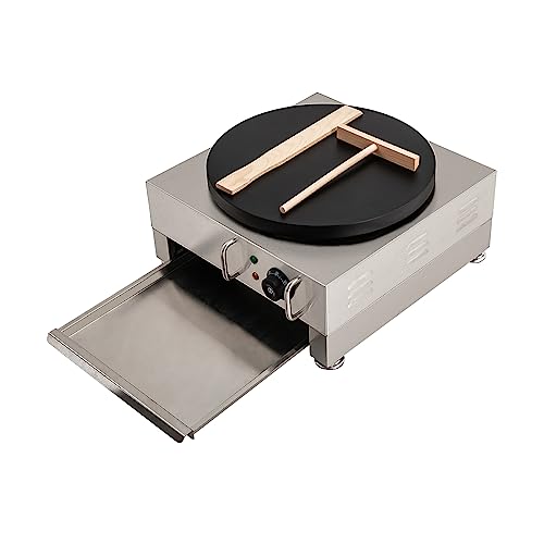 Ausgezeichnete Leistung: Die große, flache Kochfläche mit einem Durchmesser von 15,75 Aufschlag, die Leistung von 2,8 kW und das Heizelement mit umlaufendem Rand ermöglichen eine schnelle und gleichmäßige Erwärmung, so dass Sie einen großen Crêpe oder mehrere kleinere Crêpes gleichzeitig zubereiten können