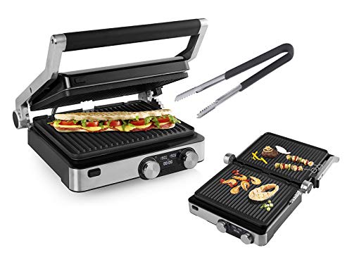 Der Princess Grill Master Pro verfügt über 2 einstellbare Thermostate, mit denen jeweils die Temperatur für die obere und untere Platte individuell eingestellt werden kann. Der Paninigrill kann auf 180⁰ geöffnet und so als Tischgrill für die ganze Familie verwendet werden. Braten Sie Ihr Steak bei hoher Temperatur auf einer Platte und rösten Sie Ihr Gemüse auf der anderen Seite bei einer niedrigeren Temperatur. Dank der hohen Wattleistung von 2000Watt heizt sich der Elektrogiller sehr schnell auf, sodass Sie niemals lange auf Ihr Mittag- oder Vesper warten müssen.