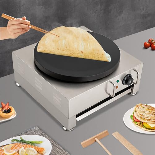 Elektrische Pfannkuchenmaschine, Crepes Maker Elektrischer, 16 Zoll große Pfannkuchenmaschine Crepes Griddle mit hölzernen Spreizer, für Crepes, Pancakes, Galettes, Burritos, Taccos