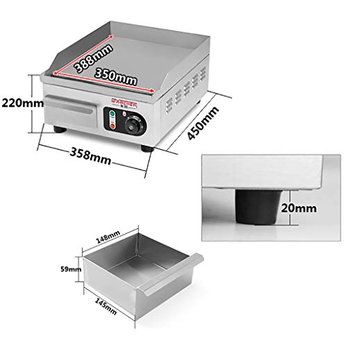 Dies ist eine professionelle gewerbliche Bratpfanne, die sich ideal zum Braten von Eiern, Kuchen, Fleisch, Hamburgern usw. eignet. Diese elektrische Arbeitsplatte jeder hochwertigem Edelstahl ist korrosionsbeständig und für den Langzeitgebrauch alle nasenlang. Mit einer Leckölbohrung und einer herausnehmbaren Ölschublade können Sie die Heizplatte schnell und einfach reinigen. Das Temperaturwählrad bietet eine genaue Heizungsregelung. Dank des großen Plattenbereichs können Sie mehr Lebensmittel gleichzeitig braten.