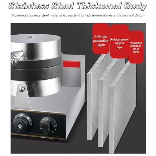 【Hochwertiges kommerzielles Waffeleisen】 Die Backform besteht aus Aluminiumguss mit hochwertiger Antihaftbeschichtung und hoher Wärmeleitfähigkeit, während der Maschinenkörper aus einem Maschinenkörper aus rostfreiem Stahl besteht, der robust und langlebig ist, beständig gegen hohe Temperaturen und nicht leicht zu rosten.