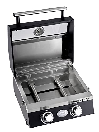 Produkt 1: RÖSLE Gasgrill BBQ-Portable VIDERO G2-P 50 mbar: Hochwertiger mobiler Gasgrill mit 2 Edelstahlbrennern und Warmhalterost für reines Grillvergnügen – zu Hause als Tischgrill im Garten und der Terrasse, als Balkongrill oder unterwegs beim Tagesausflug im Grünen oder als Campinggrill beim Campen