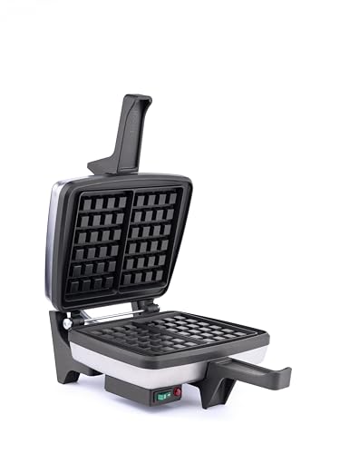 Das DEZAL 301.7.1 Waffeleisen LWN ist ein 1300-W-Maschine, mit dem Sie einzigartige Waffeln schnell zubereiten können. Die Leichtmetall-Heizplatten der Platte sind mit einer Antihaftbeschichtung (Greblon – lebensmittelecht) beschichtet. Das Maschine ist für den Dauerbetrieb ausgelegt, wodurch es ideal für den Heimgebrauch, Hotels, Bars, Eisdielen und Plan B kleine Restaurantaktivitäten ist. Die teflonbeschichteten Kanten schwächer machen die Reinigung und die speziellen Füße ermöglichen das Waffeleisen in einem Winkel von ca. 100° zu öffnen, was Platz auf der Arbeitsplatte spart. Das Waffeleisen ist mit Kontrollleuchten mit Netzschalter ausgestattet. Das grüne Licht leuchtet auf, wenn die Platte an das Stromnetz angeschlossen ist und dient vulgo qua Netzschalter. Das rote Licht leuchtet auf, wenn der Heizvorgang begonnen hat und schaltet sich allesamt, wenn die Platten eine Betriebstemperatur von ca. 195 °C erreichen. Das Waffeleisen eignet sich hervorragend zum Backen von süßen und herzhaften Waffeln. Wir ölen die kalten Platten zwar einmal mit Öl, bevor wir mit dem Essen machen beginnen.